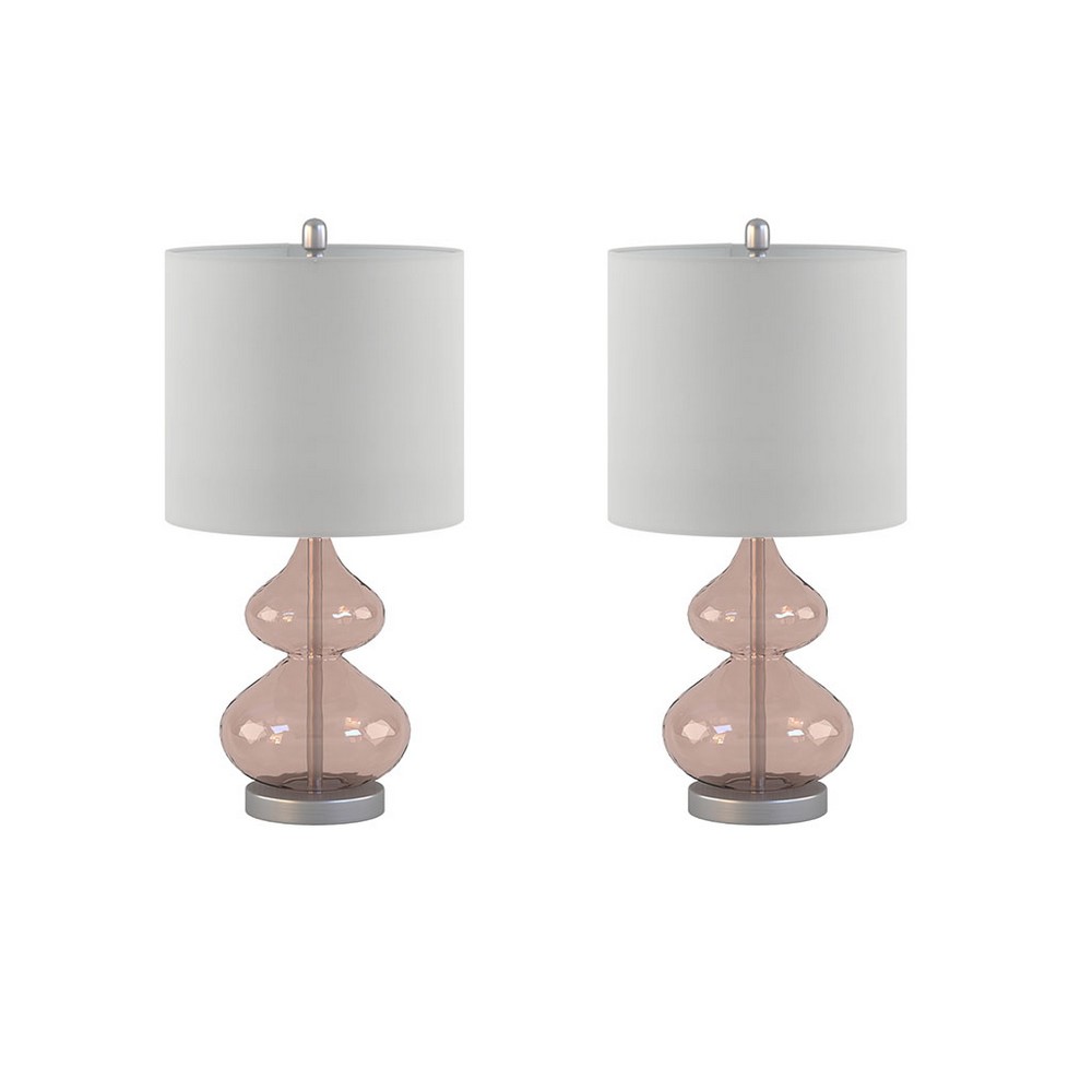 | 510 Design Set of 2 2 Table Lamp: 12" Dia x 25.25"H (2) Shade Size: 12" Dia x 11"H Body Size: 8" Dia x 17"H Base Size: 6" Dia x 1"H Socket Size: 1.5" Dia x 2.5"H Cord Length: 72" Material: 70% glass, 25% fabric, 5% iron Body Material: Iron and glass Shade Material: 40% plastic, 26% cotton, 20% metal, 14% polyester Base Finish: Silver Casual Style Includes 2 Piece(s) spot clean only The Ellipse Curved Glass Table Lamp, Set of 2 provides a tasteful and charming touch to any space. The elegant curves of the pink glass base are complemented by a white drum-shaped shade, for a chic look. Accent your living room or add more light to your bedroom with the transitional appeal of this table lamp. Two type A light bulb is needed and included. Comes with a 2-year warranty. |