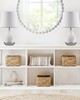 | 510 Design See below 2 Lamps: Dia.12" x 21.5"H (2) Body: Dia.7.5" x 10.25"H Shade: Dia.10" x Dia.12" x 10"H Cord Length: 60" 80% Ceramic, 20% Polyester Base Material: 100% ceramic Shade Material: 100% polyester Base Finish: White/Silver Modern/Contemporary Style Includes 2 Piece(s) • Spot clean only; Handle with care • To protect finish, do not apply abrasives or household cleaners, dust with soft dry cloth. • Do not exceed specified wattage. Elevate your space with the Liora table lamp set from 510 Design. This set includes two ceramic lamps, showcasing a teardrop design in a striking white and metallic silver finish. Paired with linen-hued, tapered drum shades for an elevated and modern touch. Features a 60" clear cord, on/off rotary switch, and compatibility with Type A bulbs (two 9W LED bulbs included). Non-dimmable. Spot clean. Comes with a 2-year warranty. A blend of elegance and function for any room. |