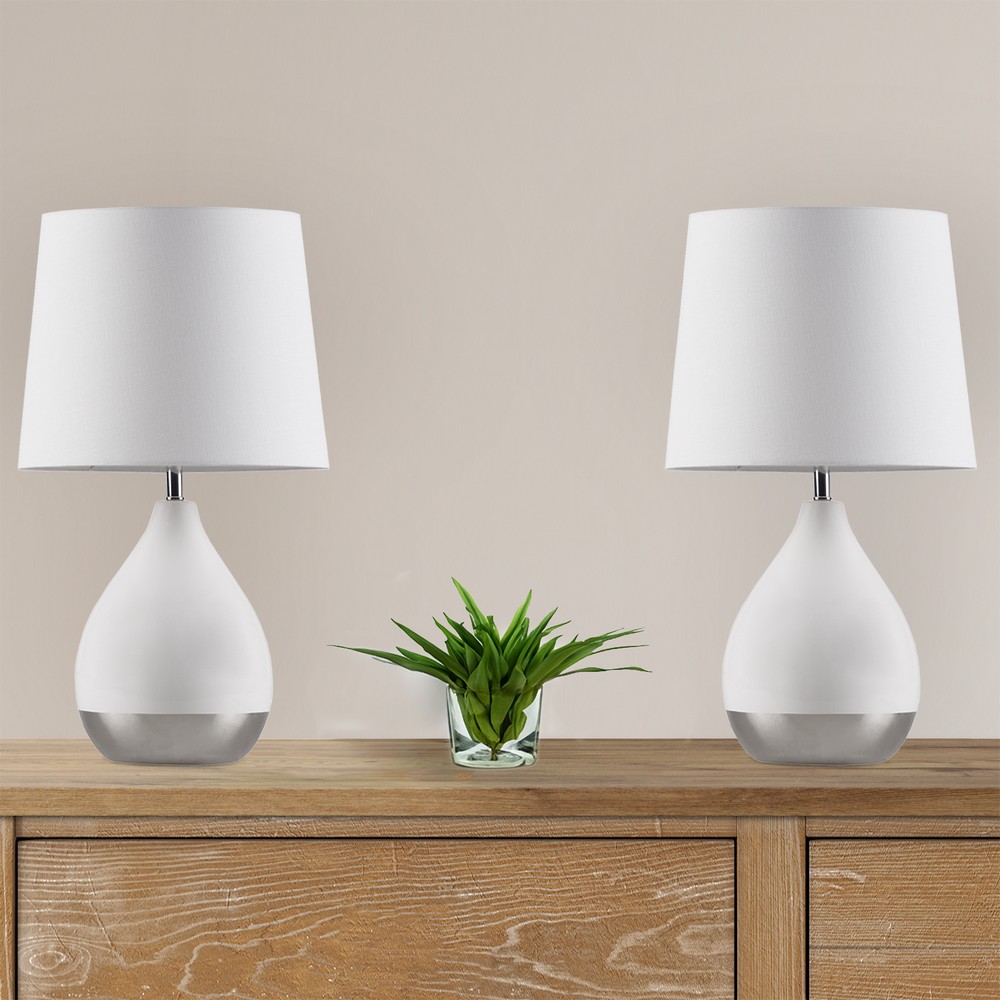 Liora 2Tone Ceramic Table Lamp Set of 2 White Silver