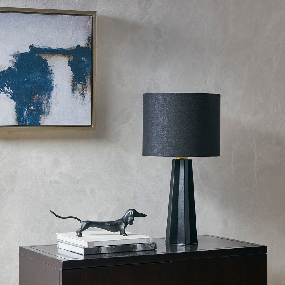 | Martha Stewart See below 1 Table Lamp: 11.5"Dia x 22"H Body Size: 5"Dia x 16.785"H Shade Size: 11.5"Dia x 9"H Socket Size: 1.5"Dia x 2.5"H Cord Length: 60" 70% Ceramic, 15% Metal, 15% Fabric Base: Ceramic Shade Fabric: 65% polyester, 35% cotton Base Finish: Matte black Modern/Contemporary Style Includes 1 Piece(s) Spot clean only, handle with care Bring a bold, modern touch to your home with the Martha Stewart Athena Geometric Ceramic Table Lamp. This ceramic table lamp features modern fluted design in a matte black finish with a black shade to create a sophisticated contemporary look. The drum shade is made from linen and is not adjustable. Flaunting a simple and clean design, this black table lamp uses a rotary on/off switch and adds a striking accent to your bedroom or living room. One Type A light bulb is needed and included. Spot clean only. Comes with a 2-year warranty. |