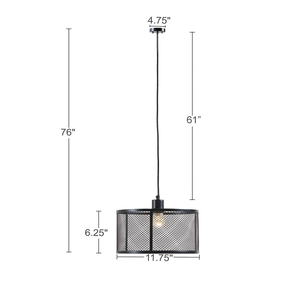 | Ink+ivy See below 1 Pendant: 11.75"Dia x 76"H Body Size: 11.75"Dia x 6.25"H Socket Size: 1.5"Dia x 2.5"H Cord Length: 61" Canopy Pendants: 4.75"Dia x 1"H 90% iron, 10% cord Finish: Black Modern/Contemporary Style Includes 1 Piece(s) Spot clean only handle with care Introduce a bold, industrial update to your home decor with the INK+IVY Jaxson Metal Mesh Pendant. This single light pendant features a metal caged drum shade with a black finish to create a simple, yet modern design. A single light in the center brightly illuminates your space, while hanging 76-inches down from the ceiling. Hang this single light pendant in your entryway, kitchen, or living room to give your home decor a striking industrial touch. Handle with care. Spot clean only. |