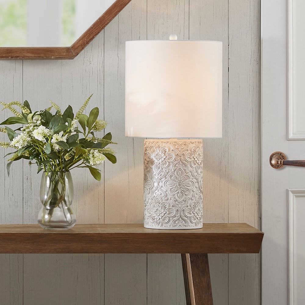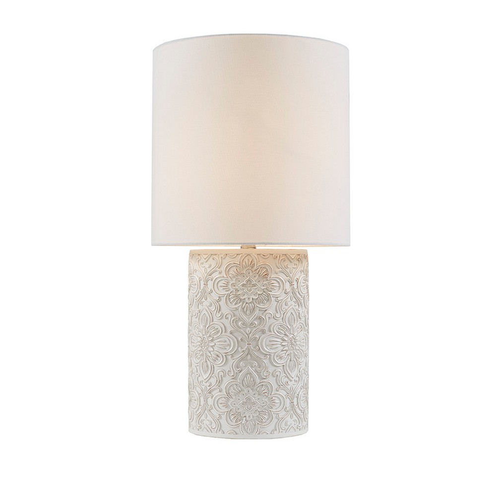 Ashbourne Embossed Floral Resin Table Lamp Ivory