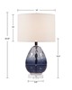| Urban Habitat See below 1 Table Lamp: 14"Dia x 24.25"H Body Size: 8"Dia x 16.5"H Shade Size: 14"Dia x 10"H Socket Size: 1.5"Dia x 2.5"H Cord Length: 72" 65% glass, 25% fabric, 10% crystal, 5% iron Body: Glass, crystal, and iron Shade Fabric: 65% polyester and 35% cotton Metal Finish: Plated silver Transitional Style Includes 1 Piece(s) Spot clean only Handle with care Urban Habitat Borel Ombre Glass Table Lamp. Beautifully designed, this glass table lamp flaunts a blue hue that adds a soft touch of color to your room. The cream drum-shaped lamp shade tastefully accents the base, while softly filtering the light to give off a warm glow. Plug in to a power source using the 72-inch clear cord and illuminate your decor by flipping the on/off switch located on the socket. Eye-catching and unique, this glass table lamp offers a chic update to your living room or bedroom. One spiral CFL light bulb is included. One 60-watt incandescent bulb or one spiral 13-watt CFL light bulb is needed. Comes with a 2-year warranty. |