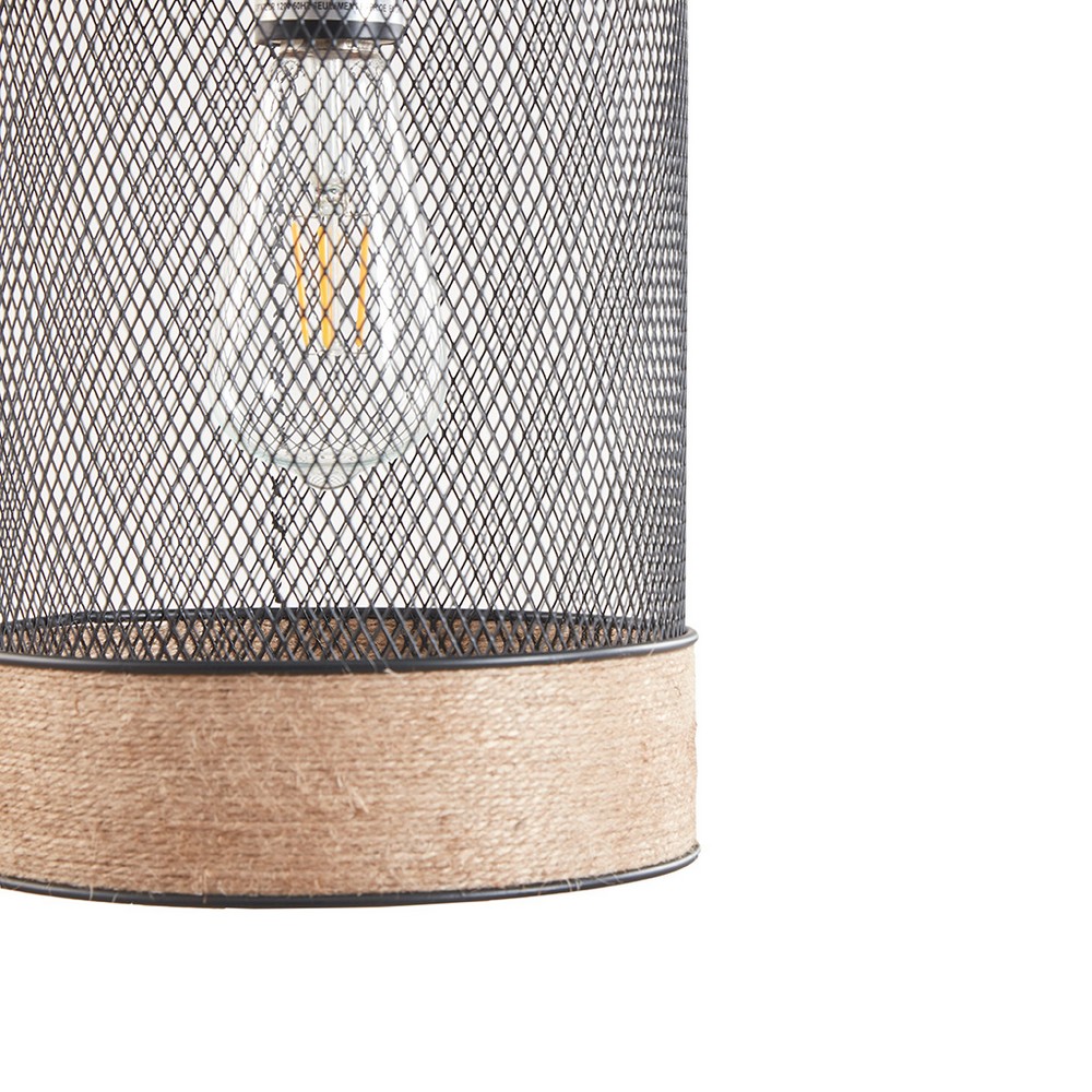 Orion Natural Rope and Metal Mesh Cylinder Pendant Natural Black