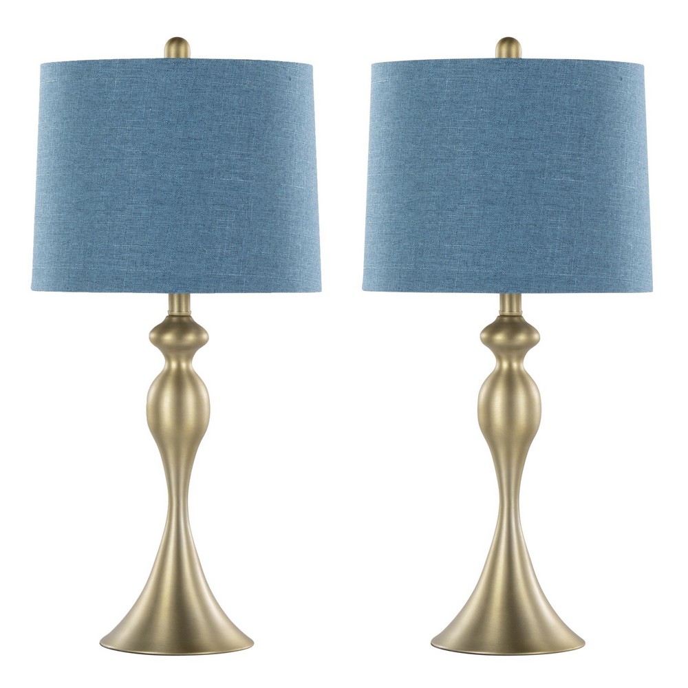 | Colors include: Gold Metal, Moroccan Blue Linen This sleek set of Ashland Table Lamps from Grandview Gallery by LumiSource cuts an eye-catching figure. With their curvaceous hourglass silhouettes, these lamps add sensuous class to any room. Each lamp is crowned by elegant double-layered shades and comes in a variety of colors, so you can pick a combination that suits your space the best. REQUIRES TWO (2) 100W BULBS, Bulbs included; Indoor use only, UL Listed, cUL Listed, Assembly required 13"L x 13"W x 27.25"H Shade To Floor Height: 17" Lamp Body Length: 7" Lamp Body Width: 7" Lamp Body Height: 15" Lamp Neck Height: 2" Shade Length: 13" Shade Width: 13" Tapered Shade Length: 12" Tapered Shade Width: 12" Shade Height: 10" Finial Height: 2" Gold plated finish Linen empire shade 3-way rotary switch Includes two table lamps Suitable for Living Room, Den, Bedroom, Office Item Weight: 3.5 Ships in 1 box(es) |