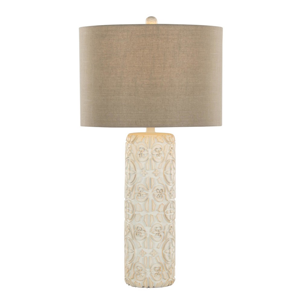Add eye-catching style to your space with the gorgeous Charlotte Table Lamp from Grandview Gallery by LumiSource. The cylindrical polyresin base features an intricately carved pattern, a matching finial, and a linen drum shade. This is a beautiful piece will illuminate any space in your home!