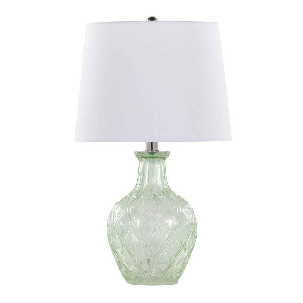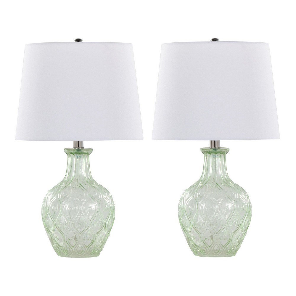 | Colors include: Clear Recycled Spanish Glass, Chrome Metal, White Linen These Gloria Accent Table Lamp from Grandview Gallery by LumiSource add an airy country charm to your end tables or nightstands. They feature a sleek glass jug-shaped base with a textured pattern and a minimal drum shade design lets the body of the lamp really shine. Whether it is placed in the bedroom, living room, office, or entryway, the Gloria lamp will surely brighten up your space. REQUIRES TWO (2) 60W BULBS, BULBS NOT INCLUDED; Indoor use only, UL Listed, cUL Listed, Assembly required 12"L x 12"W x 20.5"H Shade to Floor Height: 10.75" Lamp Body Length: 7" Lamp Body Width: 7" Lamp Body Height: 10.25" Lamp Neck Height: 1.5" Shade Length: 12" Shade Width: 12" Tapered Shade Length: 10" Tapered Shade Width: 10" Shade Height: 9" Finial Heig White linen drum shade Stylish textured glass construction Rotary switch Includes two table lamps Suitable for Living Room, Den, Bedroom, Office Item Weight: 3 Ships in 1 box(es) |