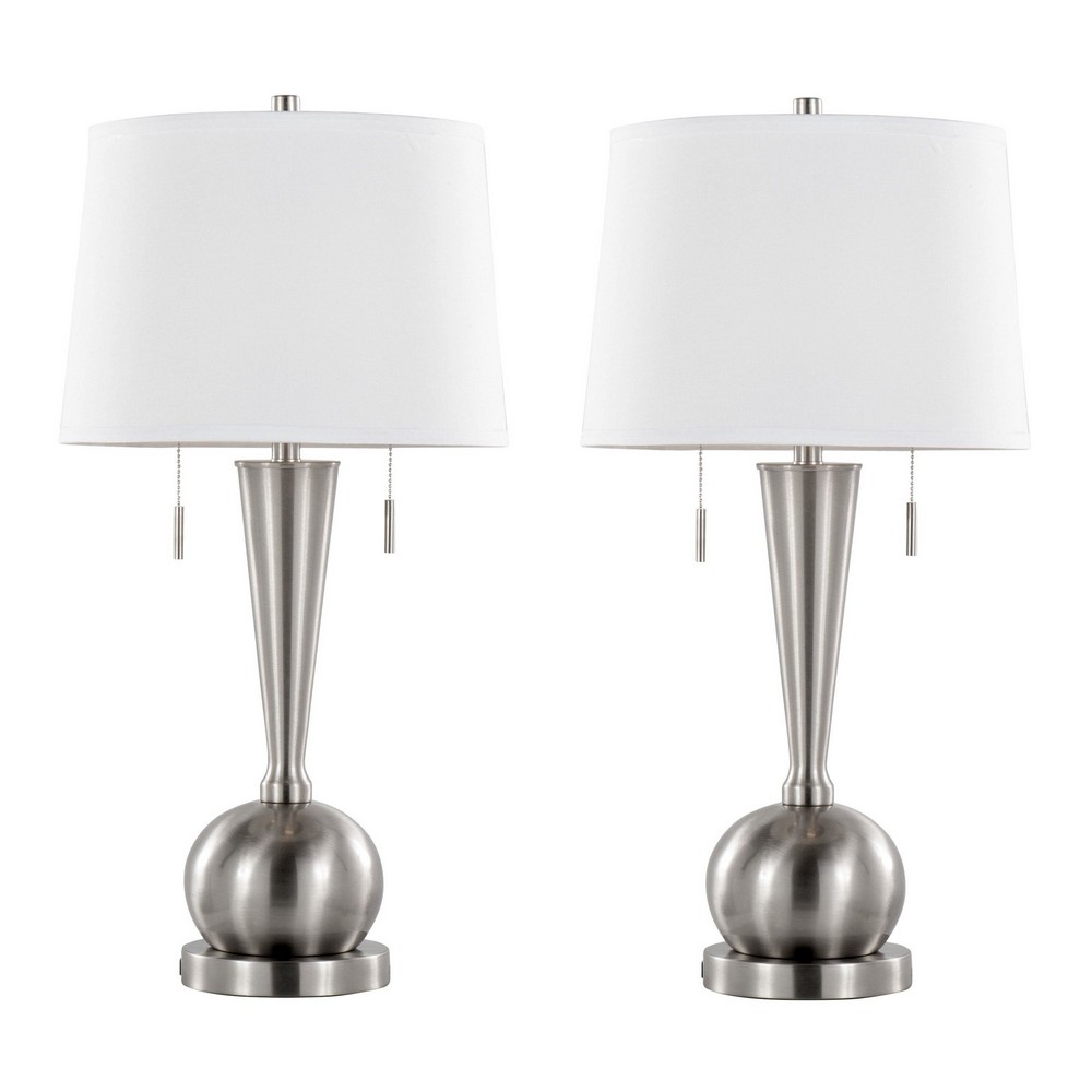 Lumisource Jules 30.25in Metal Table Lamp with USB - Set of 2 Brushed Nickel