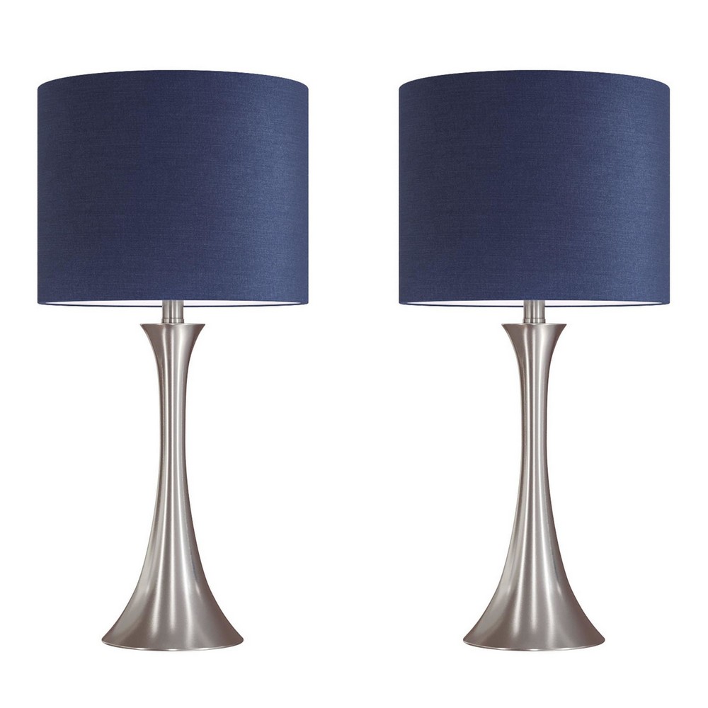 | Colors include: Brushed Nickel, Navy Linen Add sleek modern style to your space with the Lenuxe Table Lamp Set from Grandview Gallery by LumiSource, which features a beautiful round base that elegantly curves up into a lovely hourglass body. Each lamp is topped by a metal finial and a drum shade, creating a lamp that is versatile yet stylish. Whether resting on your nightstands, set on a side table in the den, or tucked into your favorite reading nook, this lamp is a chic addition to any aesthetic. REQUIRES TWO (2) 100W BULBS, Bulbs included; Indoor use only, UL Listed, cUL Listed, Assembly required 12"L x 12"W x 24.25"H Shade To Floor Height: 14.5" Lamp Body Length: 6.5" Lamp Body Width: 6.5" Lamp Body Height: 13.75" Lamp Neck Height: 1.5" Shade Length: 12" Shade Width: 12" Shade Height: 9.5" Finial Height: 0.75" Harp/pole Height: 7.5" Cord Length: Brushed nickel finish Drum shade 3-way rotary switch Includes two table lamps Suitable for Living Room, Den, Bedroom, Office Item Weight: 3.5 Ships in 1 box(es) |
