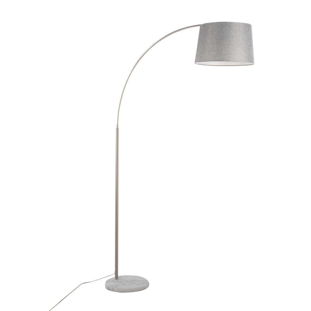 | Colors include: White Marble, Nickel, Grey Linen Light up any room with the contemporary flair of the March Floor Lamp by LumiSource. With a dramatic metal arc, modern linen drum shaped shade and a marble base, the March Floor Lamp will create a striking look for any living room or bedroom. REQUIRES ONE (1) 60W BULB, BULB INCLUDED; Indoor use only, UL Listed, cUL Listed, Assembly required 50.5"L x 13.75"W x 74"H Lamp Head Height: 62.5" Base Length: 13.5" Base Diameter: 13.5" Shade Length: 16" Shade Width: 16" Shade Height: 10" Grey linen shade White marble base Nickel finish In-line foot switch Suitable for Living Room, Den, Bedroom, Office Item Weight: 27 Ships in 2 box(es) |