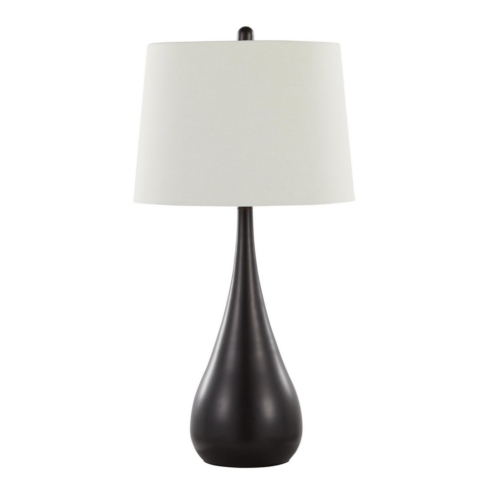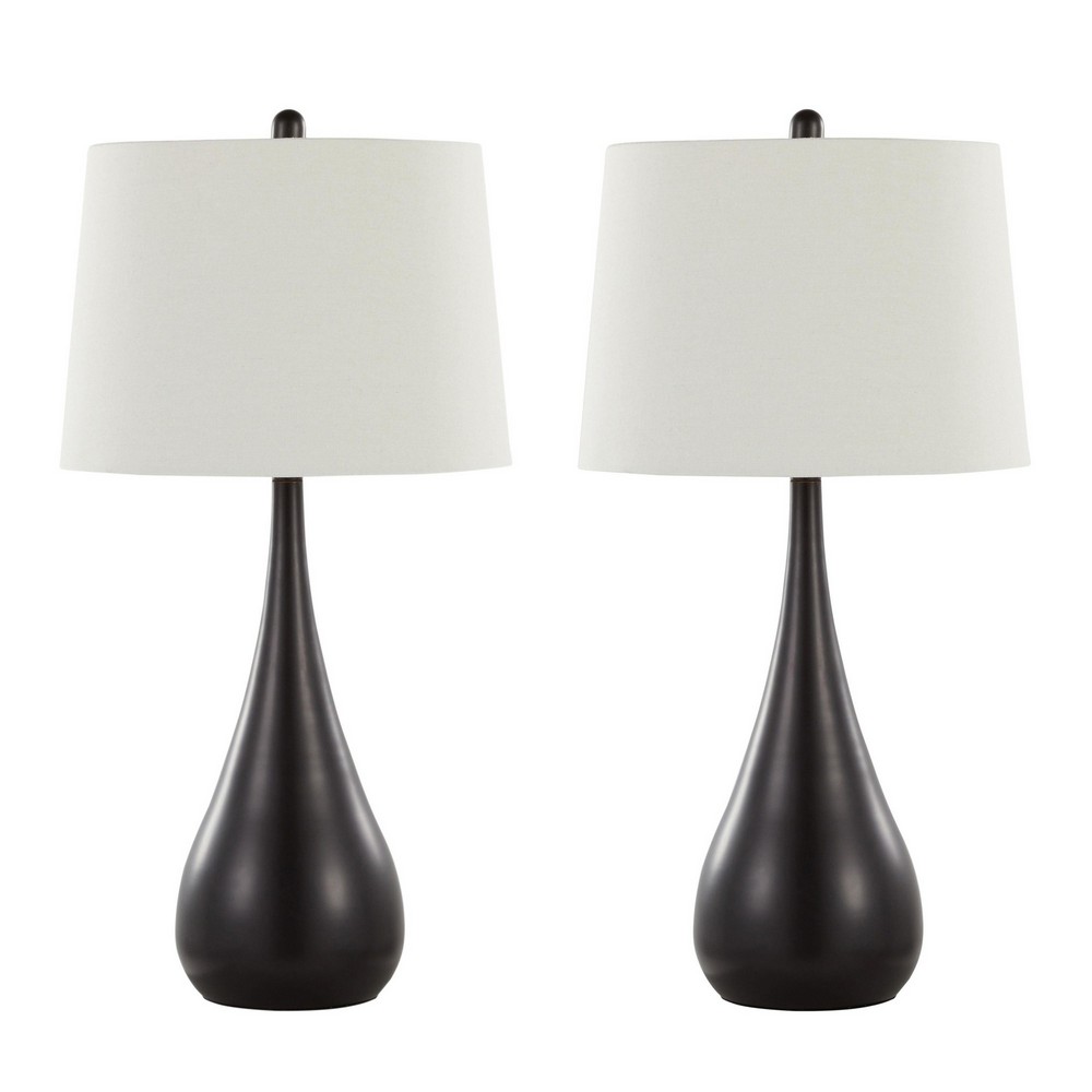 | Colors include: Oil Rubbed Bronze, White Linen Frame your sofa or master bed in a modern style with the Pebble Table Lamp from Grandview Gallery by LumiSource. Crafted from metal, each piece features a teardrop-shaped base for a sleek and streamlined look. Linen tapered hardback drum shades sit up top, giving it classic appeal while diffusing the light in an ambient direction. These lamps will perfectly complement any style in your space. REQUIRES TWO (2) 100W BULBS, Bulbs included; Indoor use only, UL Listed, cUL Listed, Assembly required 15"L x 15"W x 29.75"H Shade To Floor Height: 17.5" Lamp Body Length: 7" Lamp Body Width: 7" Lamp Body Height: 17" Lamp Neck Height: 1.5" Shade Length: 15" Shade Width: 15" Tapered Shade Length: 13" Tapered Shade Width: 13" Shade Height: 10.5" Finial Heig Oil rubbed bronze finish Tapered drum shade 3-way rotary switch Includes two table lamps Suitable for Living Room, Den, Bedroom, Office Item Weight: 5.5 Ships in 1 box(es) |