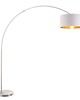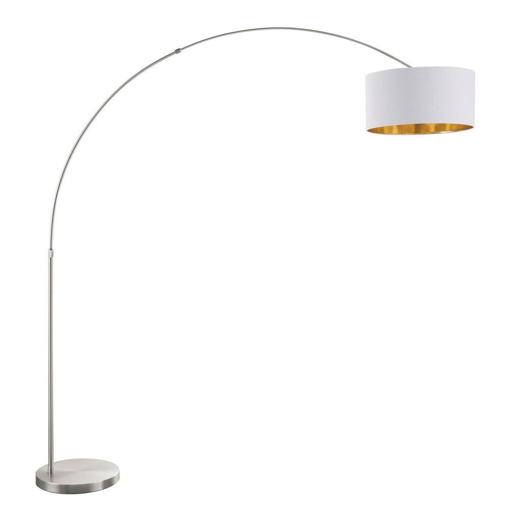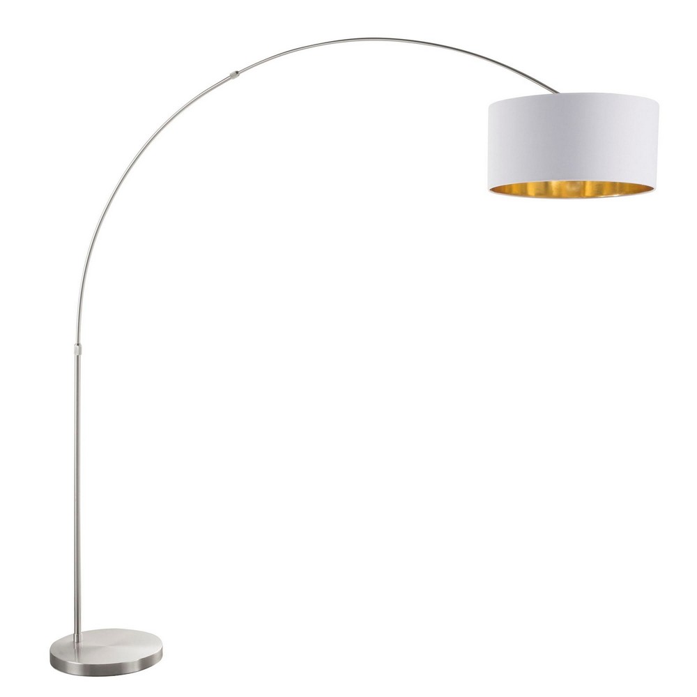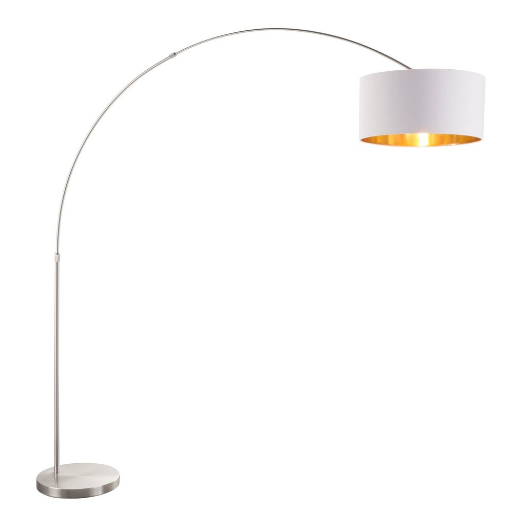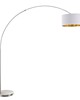 | Colors include: Satin Nickel, White Shade w/Gold Accent The sweeping metal arc and the large fabric shade of the Salon Floor Lamp combine to make an elegant statement. Perfect as a corner lamp, the suspended shade casts a soft glow over your living space. Available in various colors and finishes, choose the one that suits your space best. One (1) 75W bulb, Bulb NOT included; Indoor use only, UL listed, cUL listed, Assembly required 74"L x 17.5"W x 76"H Base Length: 13.75" Base Width: 13.75" Shade Length: 17.75" Shade Width: 17.75" Shade Height: 8.75" Sturdy metal base Fabric shade In-line foot switch Uses one 75W bulb Suitable for Great for use in living room, den, dining room, bedroom, or office Item Weight: 26 Ships in 2 box(es) |