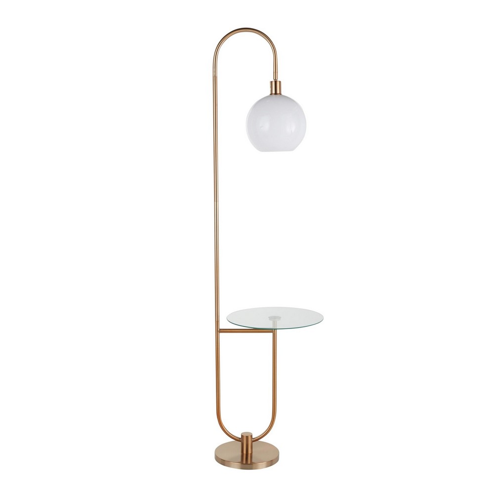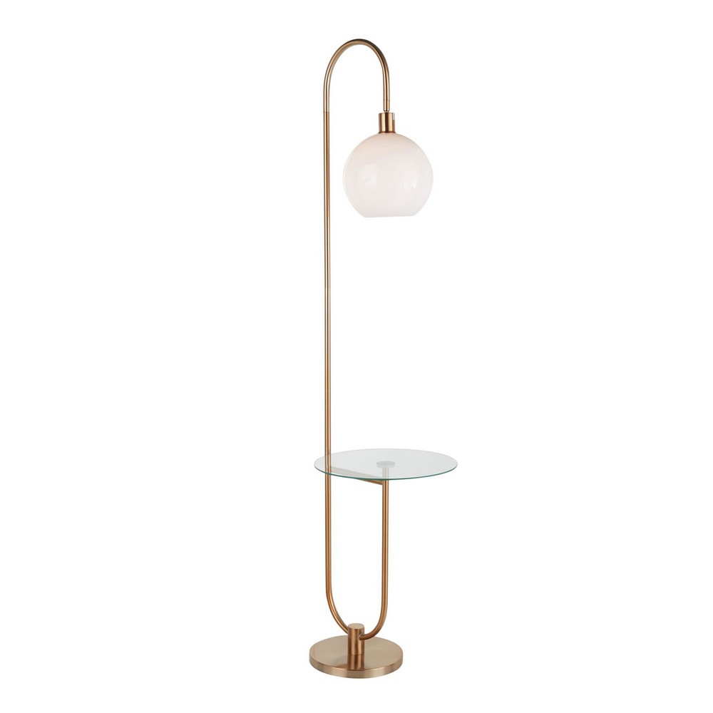 A chic mix of materials creates a contemporary look that will fit any room. The Trombone Floor Lamp by Lumisource is the perfect size for smaller spaces. With a gold frame, attached tempered glass table, and white round sconce, the Trombone will look great next to any sofa, accent chair, or even in a bedroom.
