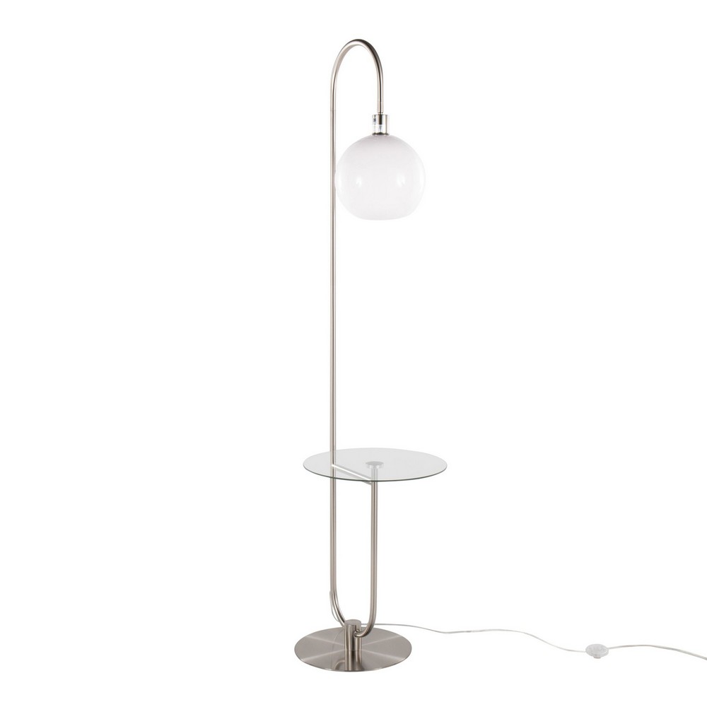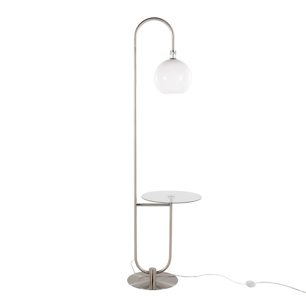 | Colors include: Nickel Metal, Clear Glass, White Plastic A chic mix of materials creates a contemporary look that will fit any room. The Trombone Floor Lamp by Lumisource is the perfect size for smaller spaces. With a nickel frame, attached tempered glass table, and white round sconce, the Trombone will look great next to any sofa, accent chair, or even in a bedroom. REQUIRES ONE (1) 60W BULB, Bulb included; Indoor use only, UL Listed, cUL Listed, Assembly Required; IMPORTANT: do NOT place tempered glass near heat vents or radiator vents; 17.75"L x 16"W x 70.5"H Shade To Floor Height: 52" Base Length: 10.5" Base Width: 10.5" Shade Length: 9" Shade Width: 9" Shade Height: 8.5" Round white sconce Round glass table top Nickel frame finish In-line foot switch Suitable for Living Room, Den, Office, Bedroom Item Weight: 16 Ships in 1 box(es) |