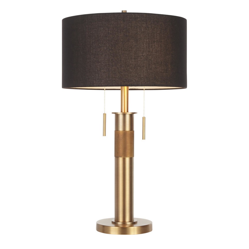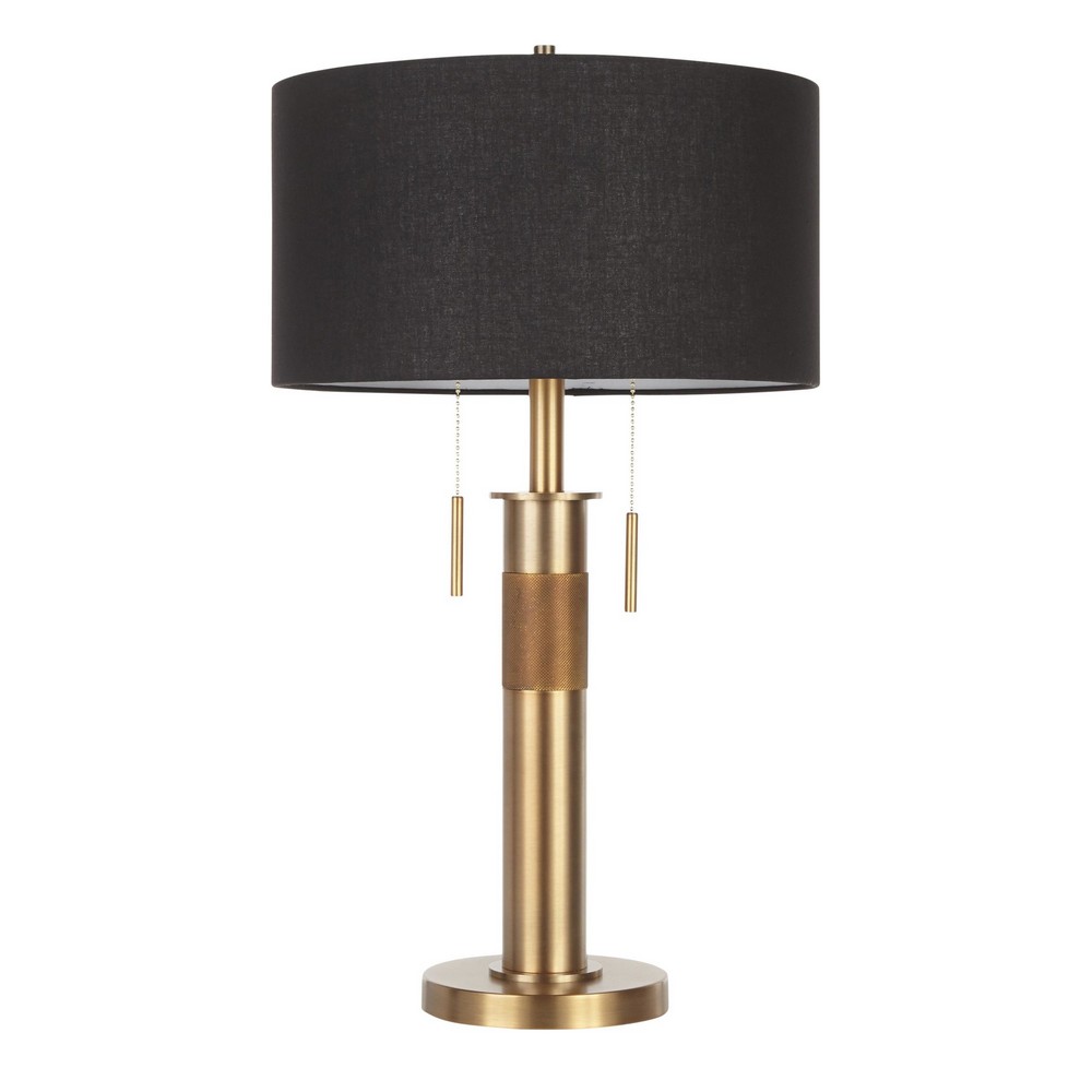 | Colors include: Antique Brass, Black Linen Bring light to your space with the industrial flair of the Trophy Table Lamp by LumiSource. This lamp gives off great ambient light through a fabric drum shade supported on a sturdy metal construction. With elegant pull chains and subtle textured metal accents, this lamp is perfect for that final touch of modern industrial charm. Two (2) 60W Bulbs, Bulbs NOT included; Indoor use only, UL Listed, cUL Listed, Assembly required 15"L x 15"W x 26.5"H Lamp Head Height: 21" Base Length: 6.75" Base Width: 6.75" Shade Length: 15" Shade Width: 15" Shade Height: 8" Fabric drum shade Two pull chains Sturdy metal construction with textured metal accent Available in a variety of colors Suitable for Living Room, Den, Bedroom, Office Item Weight: 7 Ships in 1 box(es) |