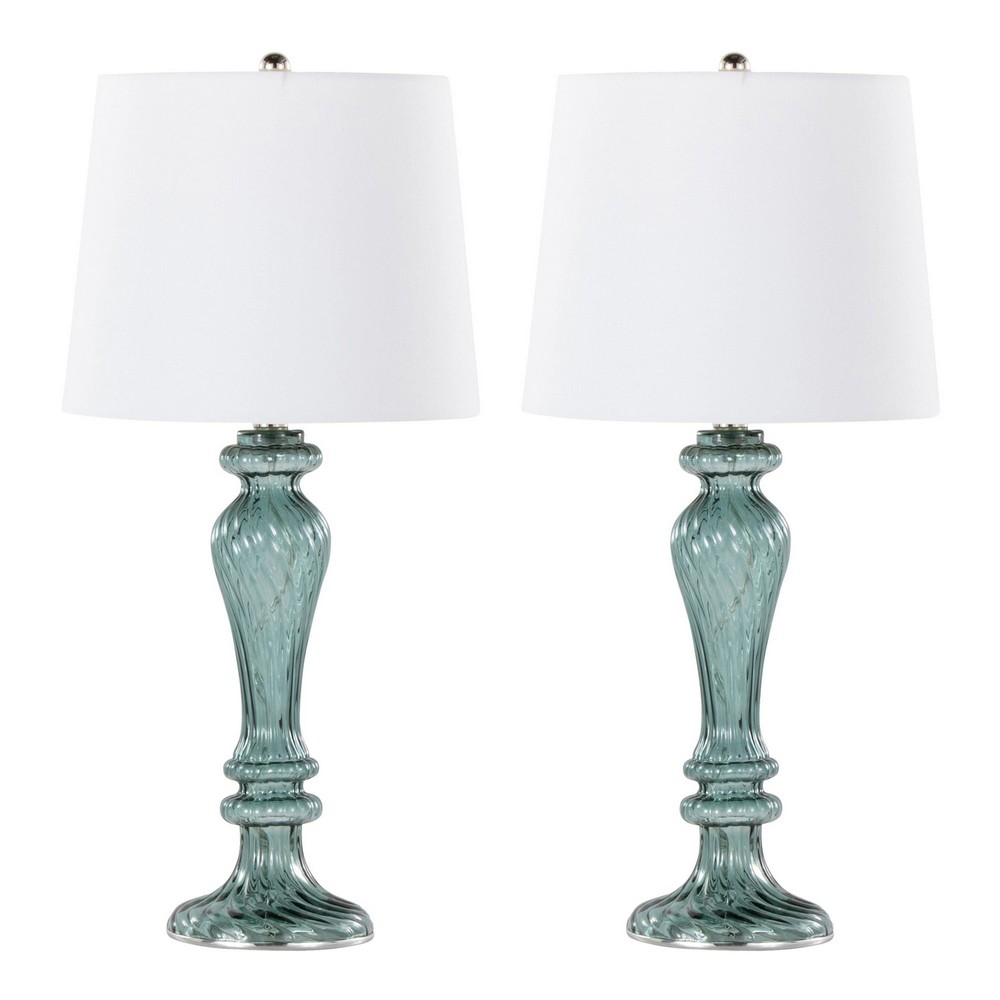 Lumisource Windsor 25in Glass Table Lamp - Set of 2 Clear Turquoise Glass