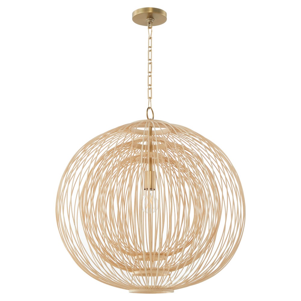 | 3 Layers of concentric shapes of Stripped Rattan with Aged Brass Decorative Link Chain. Needs 1 60 Watt Medium Bulb 8 foot chain. |