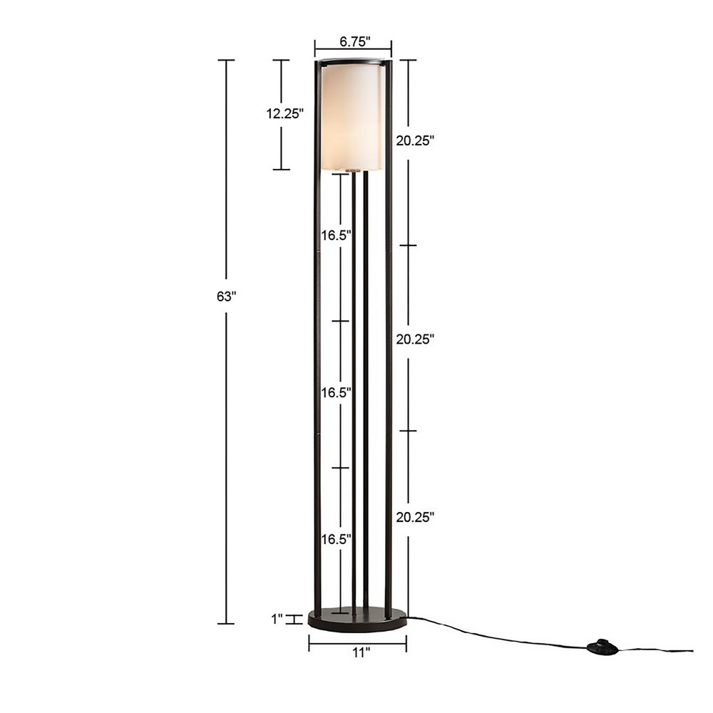 | Martha Stewart See below Overall Size: 11" Dia x 63"H Shade Size: 6.75" Dia x 12.25"H Socket Size: 1.5" Dia x 2.5"H Cord Length: 72" 75% iron, 25% glass Base: Iron Base Finish: Matte black Shade: Glass Modern/Contemporary Style Includes 1 Piece(s) Spot clean only; Handle with care The Martha Stewart Charlton Metal Floor Lamp with Glass Cylinder Shade provides an easy way to elevate and illuminate your room. Featuring a sleek, streamlined silhouette in a matte black finish, this floor lamp’s minimalist cylinder shape makes it ideal for tight spaces. The coordinating cylinder-shaped, frosted glass shade softly filters the light, for a warm and inviting glow. Place this 63" floor lamp beside a sofa, seat, or end table to give your home the quintessential radiance it deserves. Simple assembly is required. Use one Type A bulb (not included). |