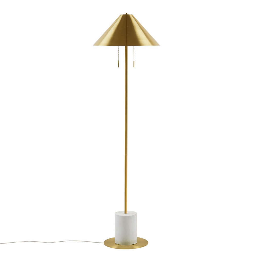 | Ink+ivy See below Overall: Dia.17.25" x 60.5"H Base: Dia.11.75" x 8.25"H Shade: 3.25" x 17.25"x 8"H Socket: Dia.1.25" x 2"H Cord: 72"L Base: 100% Iron Shade: 100% Iron Mid-Century Modern Style Includes 1 Piece(s) • To protect finish, do not apply abrasive household cleaners • Dust with a soft dry cloth • Do not exceed specified wattage Meet the INK+IVY Brillora floor lamp, a blend of modern elegance and functionality. Crafted from iron with a chic gold finish, it stands tall on a cylindrical faux marble base, complemented by gold accents. Featuring two sockets with matching gold pull chains, it offers customizable lighting options. Complete with a 72" clear cord and includes two 9W LED bulbs for added convenience. Stylish and reliable, it's a must-have addition to any space. |