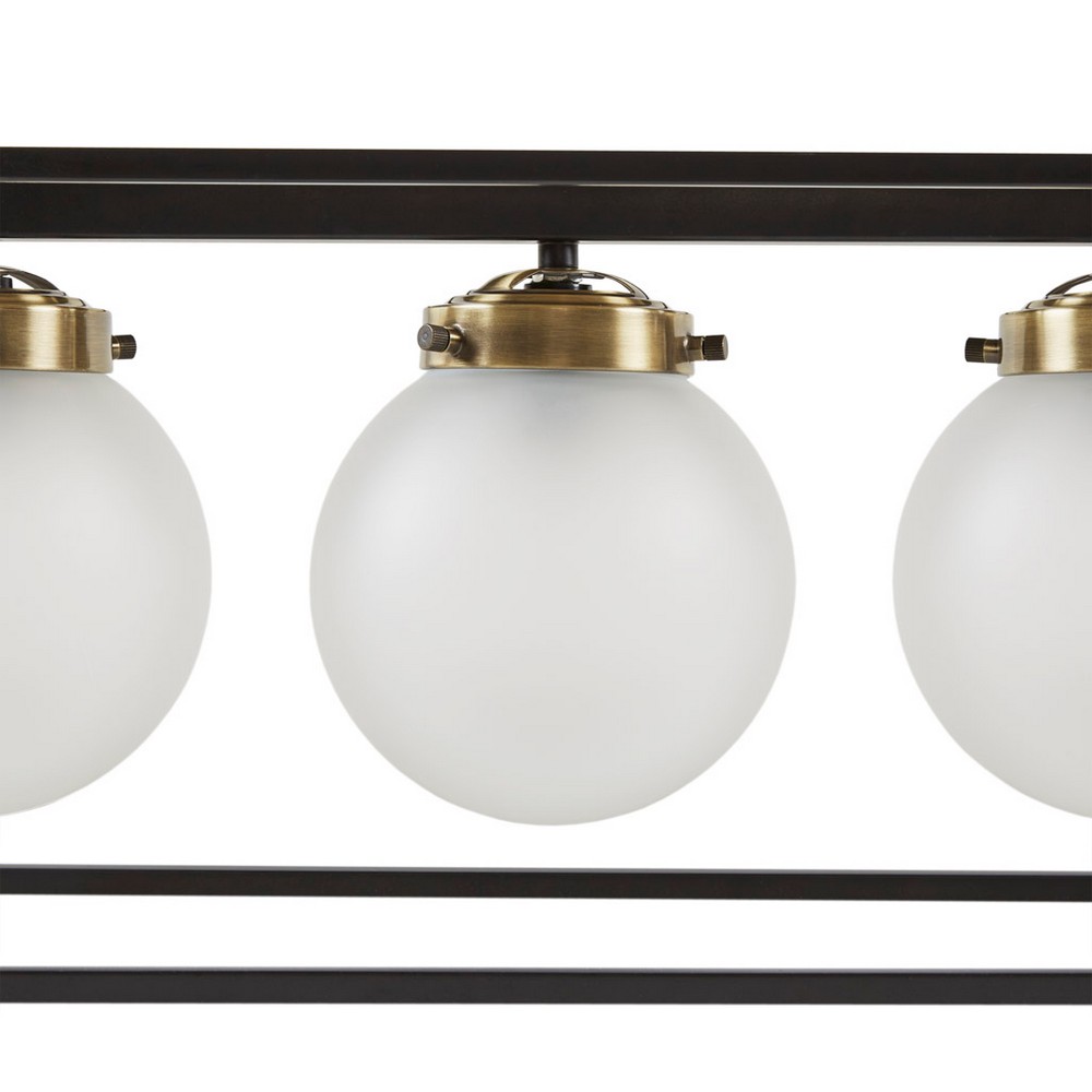 | Ink+ivy See below 1 Chandelier: 43"W x 9.5"D x 52.75"H (Min 22.75"H Max 52.75"H) Body Size: 43"W x 9.5"D x 9.5"H Shade Size: 6"Dia x 6"H Socket Size: 1"Dia x 2"H Cord Length: 42" Canopy Pendants: 25.5"W x 4.75"D x 1"H 75% iron, 25% glass Industrial Style Includes 1 Piece(s) Spot clean only handle with care Inspired by striking industrial styles, the INK+IVY Helena 6-Light Frosted Glass Globe Linear Chandelier offers a bold vintage update to your dining decor. This rectangular chandelier features an open cage design with 6 glass globe shades that brilliantly illuminate your space. An antique brass rectangular ceiling mount with 2-side downrods complements the transitional look that easily reinvigorates your kitchen or dining room. Uses 6, CFL 13W or LED 9W Type B light bulbs (not included). |