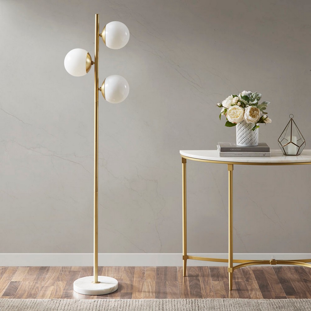 Holloway White/Gold 3-Globe Light Floor Lamp with Marble Base