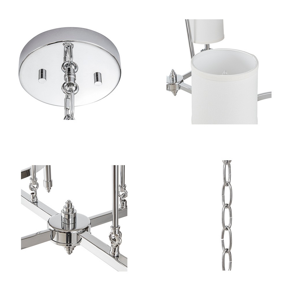| Hampton Hill See below Overall: 39.25"W x 21.75"D x 109.75"H Body: 39.25"W x 21.75"D x 36.75"H Shade: Dia.6" x 6"H Chain Length: 72"L Socket: Dia.0.75" x 4"H Canopy: Dia.5" x 1"H Iron 80% Polyester 20% Transitional Modern Style Includes 1 Piece(s) • To protect finish, do not apply abrasives or household cleaners, dust with soft dry cloth. • Do not exceed specified wattage. Introducing the Elegenza 6 Light Chandelier, a captivating fixture from the Hampton Hill Bedford Collection. This chandelier boasts an elegant transitional style with a modern touch, featuring a gracefully curved metal frame that adds sophistication to any room. It comes with 6 white cylindrical shades that provide a soft, diffused lighting effect to enhance the ambiance (bulbs not included). The adjustable chain allows for customized hanging heights, perfect for dining rooms, foyers, or living areas. All necessary mounting hardware is included for easy installation. Elevate your space with this stunning chandelier. |