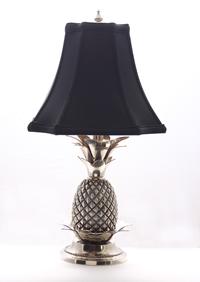| This beautiful lamp is 20 inches high and made from a solid brass casting with a pewter polished finish and comes with a 11 inch silk black shade. |