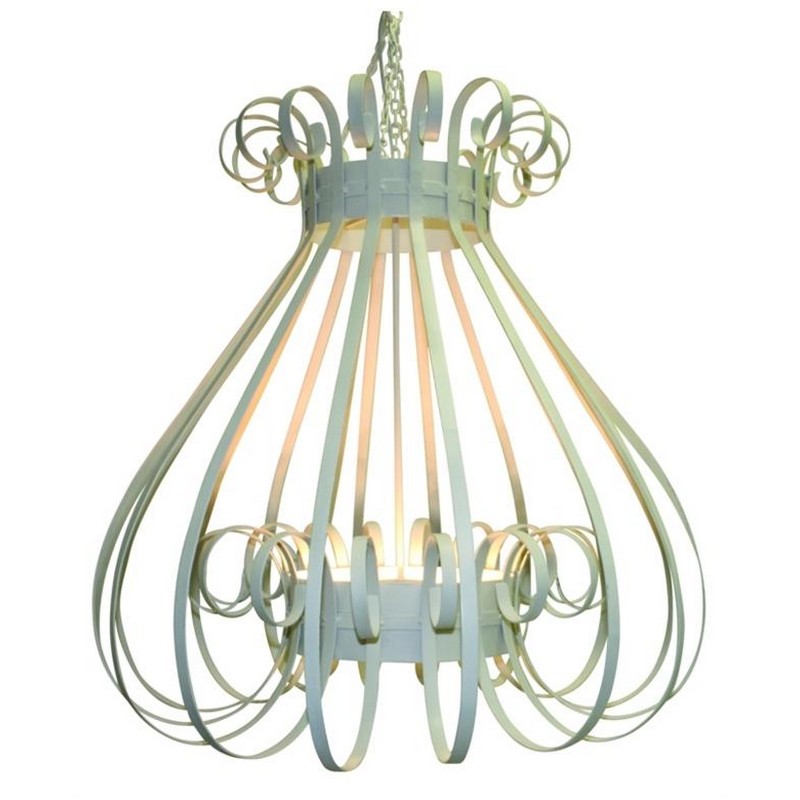 | “Dr. Livingstone, I Presume” offers hand-crafted products of unique design for the home. Airy and elegant, the White Iron Birdcage Style Chandelier features a graceful openwork frame with four lights nestled inside. Handcrafted by master artisans from iron and finished in a meticulous multi-step process, it includes a decorative white iron ceiling medallion and a 36" chain for versatile hanging. A round frosted glass diffuser at the base softens the glow from four BG25 globe bulbs. Measuring 32" in diameter and 36" tall, and weighing 10 pounds, this chandelier brings timeless charm and artisan detail to any space. |