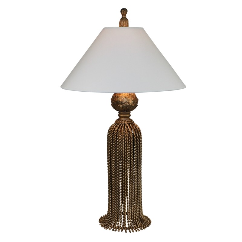 Dr  Livingstone Twisted Iron Tassel Lamp with White Shade Medium Antique Gold