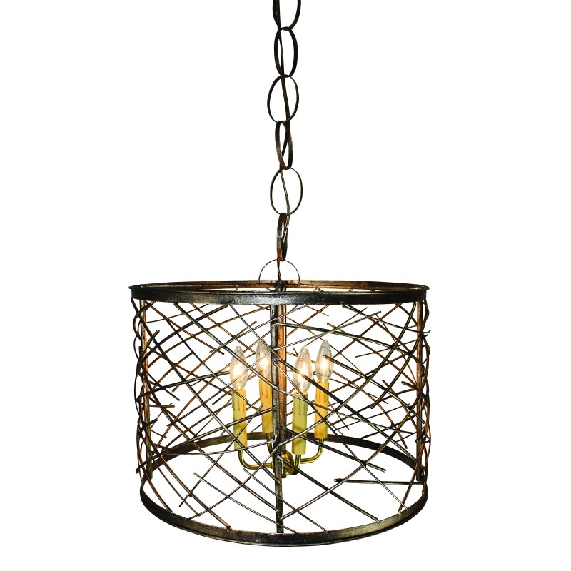 Handcrafted by master artisans from iron and tole, this round twig-style four light chandelier features a warm Light Burnished Gold finish applied through a meticulous multi-step process. Measuring 20" in diameter and 14" tall, it includes a generous 45" chain for flexible hanging options. Weighing just over 11 pounds, it’s a nature-inspired statement piece that adds organic elegance and artisan charm to any room.