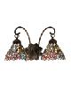 Two light wall sconce featuring pink, purple and blue wisteria.
