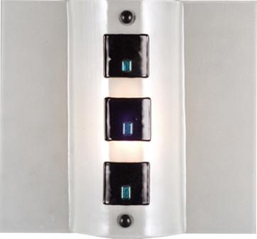 | All Suited Up In Our Finest Array The Black Tie Affair Sconce With Its Square Ebony Buttons Touched With A Drop Of Dichroic Glass Set On This Linen White Fused Glass Sconce Shade. Metro Fusion Is Designed And Created By Meyda Artists And Craftsmen Of Hand Cut Pieces Of Glass Which Are Fused TogetherAt A High Temperature. The Glass Is Mounted On A Nickel Powder Coated Sconce Which Is Ada Compliant. TOTAL:11H. Total Depth: 3.5" SHADE: 11Hx12W BULB: T-10 MAX WATT: 60 Custom Crafted In Yorkville, New York Please Allow 50 Days |