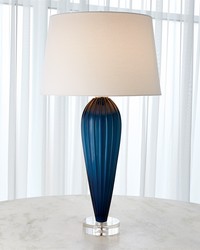 Bottega 22in Glass Accent Lamp Sapphire Blue Seeded Glass