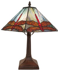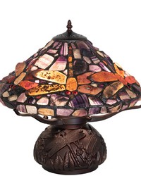 12in H Tiffany Hanginghead Dragonfly w Twisted Fly Mosaic Base Mini Lamp 26614
