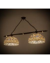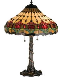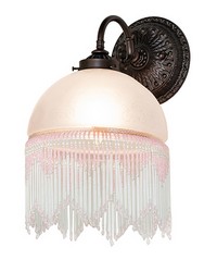 A style derived from the late 19th century British period. Typical of Victorian lighting details are candelabras with decorative ornaments, colored glass lanterns, fixtures with brass and cut glass and dangling crystal fringes.