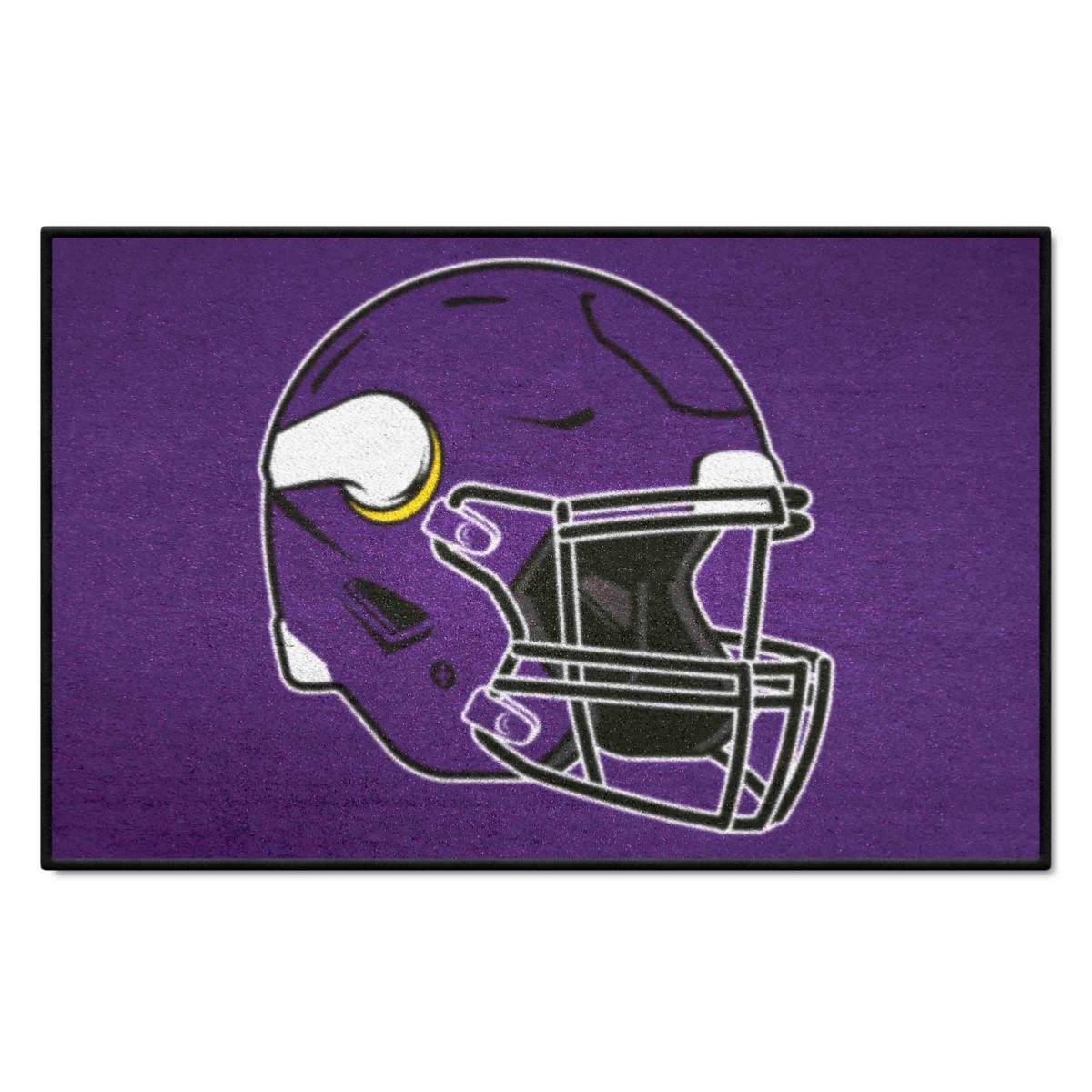 | Minnesota Vikings Starter Mat Accent Rug - 19in. x 30in., Helmet Logo 9 Ounce, 100 % Nylon Face Recycled vinyl backing for a durable and longer-lasting product Machine made and tufted in the USA Non-skid backing with serged borders for added durability Machine washable; vacuum regularly and spot clean for any easy and quick clean Officially licensed and chromojet-printed in true team colors for vibrant, lasting color NFL - Minnesota Vikings in Minnesota NFL National Football League |