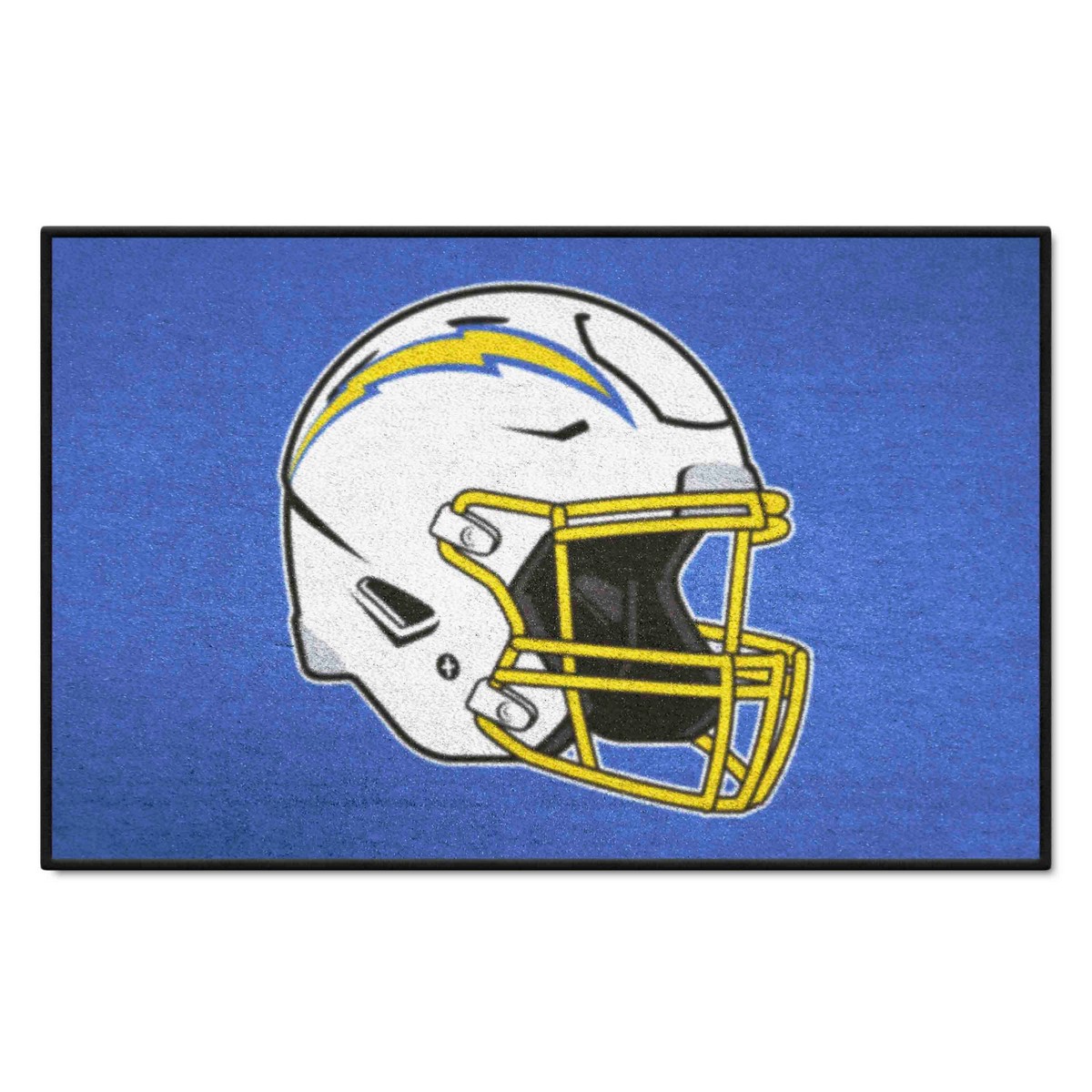 | Los Angeles Chargers Starter Mat Accent Rug - 19in. x 30in. 9 Ounce, 100 % Nylon Face Recycled vinyl backing for a durable and longer-lasting product Machine made and tufted in the USA Non-skid backing with serged borders for added durability Machine washable; vacuum regularly and spot clean for any easy and quick clean Officially licensed and chromojet-printed in true team colors for vibrant, lasting color NFL - Los Angeles Chargers in California NFL National Football League |