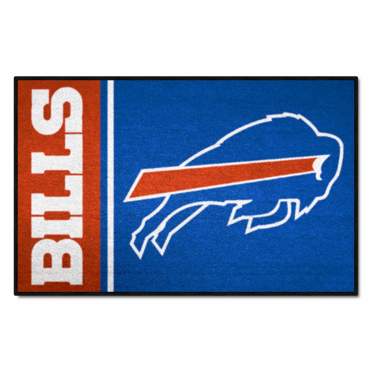 | Buffalo Bills Starter Mat Accent Rug - 19in. x 30in. 9 Ounce, 100 % Nylon Face Recycled vinyl backing for a durable and longer-lasting product Machine made and tufted in the USA Non-skid backing with serged borders for added durability Machine washable; vacuum regularly and spot clean for any easy and quick clean Officially licensed and chromojet-printed in true team colors for vibrant, lasting color NFL - Buffalo Bills in New York NFL National Football League |
