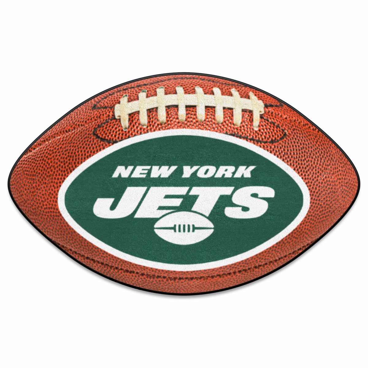 | New York Jets Football Rug - 20.5in. x 32.5in. 9 Ounce, 100 % Nylon Face Recycled vinyl backing for a durable and longer-lasting product Machine made and tufted in the USA Non-skid backing with taped borders for added durability Machine washable; vacuum regularly and spot clean for any easy and quick clean Officially licensed and chromojet-printed in true team colors for vibrant, lasting color NFL - New York Jets in New Jersey NFL National Football League |