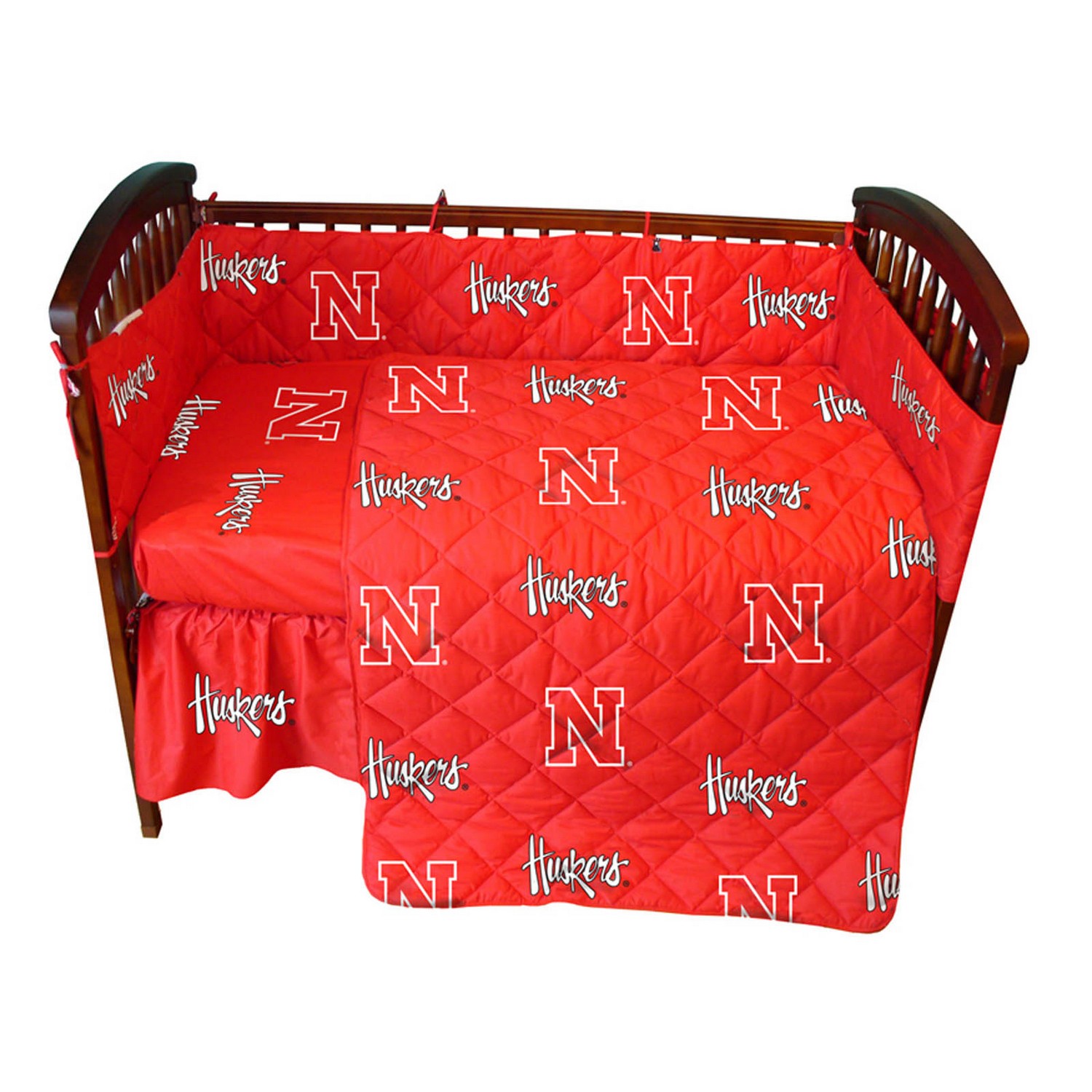 | Nebraska Cornhuskers Set includes: Quilted Comforter, 2 Fitted Sheets, Bumper Pad and a Dust Ruffle 100% Cotton Sateen, 200 Thread Count. Bright and Vibrant Officially Licensed Colors and Logos Fits Most Standard Size Crib Mattresses, Up to 6 Inches Machine Washable In Cold Water, Tumble Dry On Low Heat. Imported Machine Wash Cold; Tumble Dry Low |