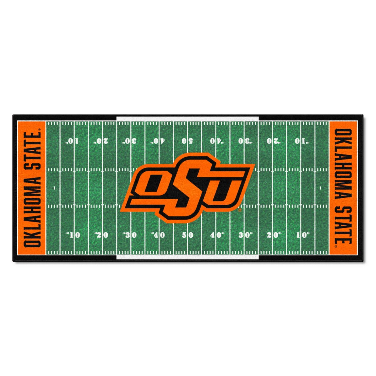 | Oklahoma State Cowboys Field Runner Mat - 30in. x 72in. 9 Ounce, 100 % Nylon Face Recycled vinyl backing for a durable and longer-lasting product Machine made and tufted in the USA Non-skid backing with serged borders for added durability Machine washable; vacuum regularly and spot clean for any easy and quick clean Officially licensed and chromojet-printed in true team colors for vibrant, lasting color Oklahoma State University in Oklahoma |