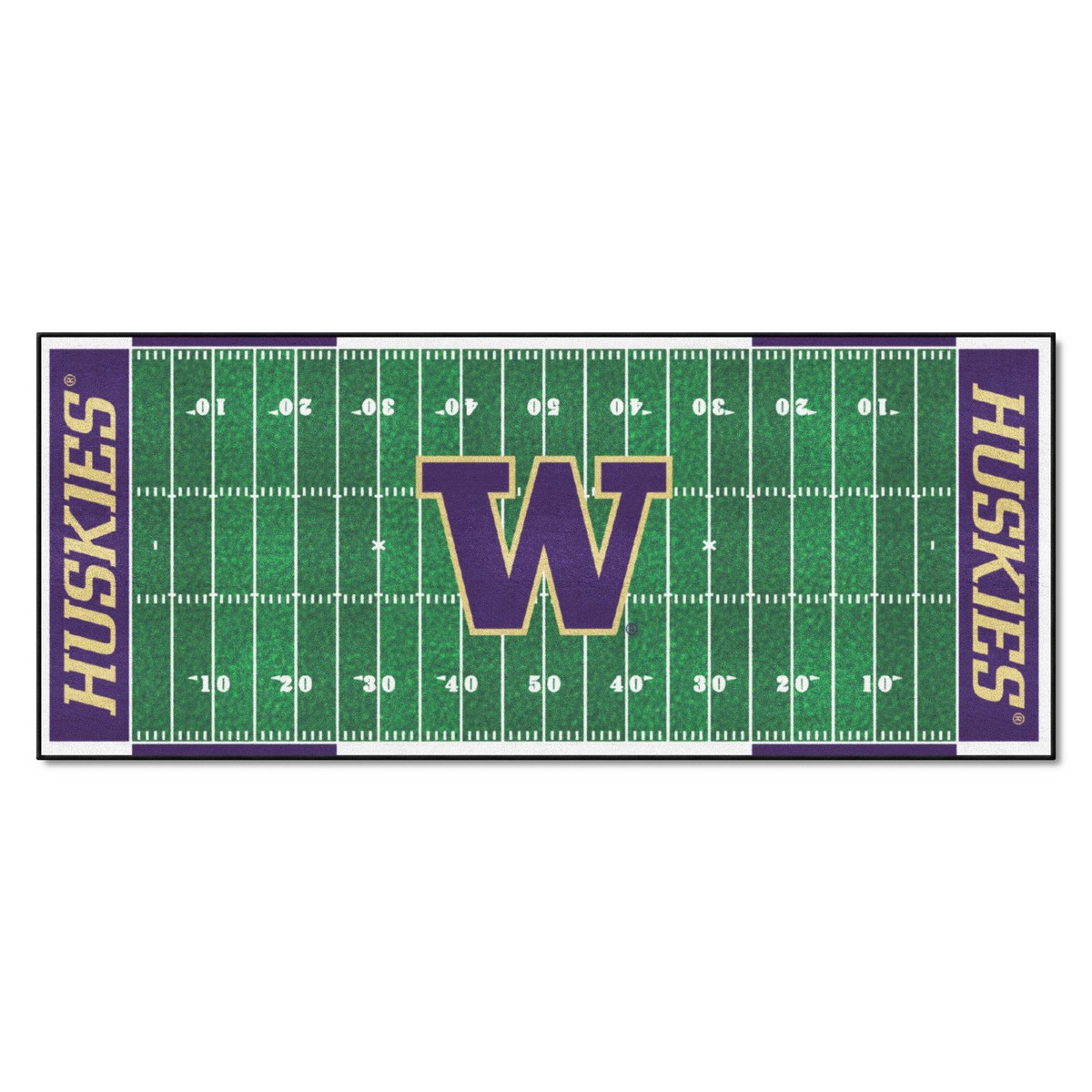 | Washington Huskies Field Runner Mat - 30in. x 72in. 9 Ounce, 100 % Nylon Face Recycled vinyl backing for a durable and longer-lasting product Machine made and tufted in the USA Non-skid backing with serged borders for added durability Machine washable; vacuum regularly and spot clean for any easy and quick clean Officially licensed and chromojet-printed in true team colors for vibrant, lasting color University of Washington in Washington |