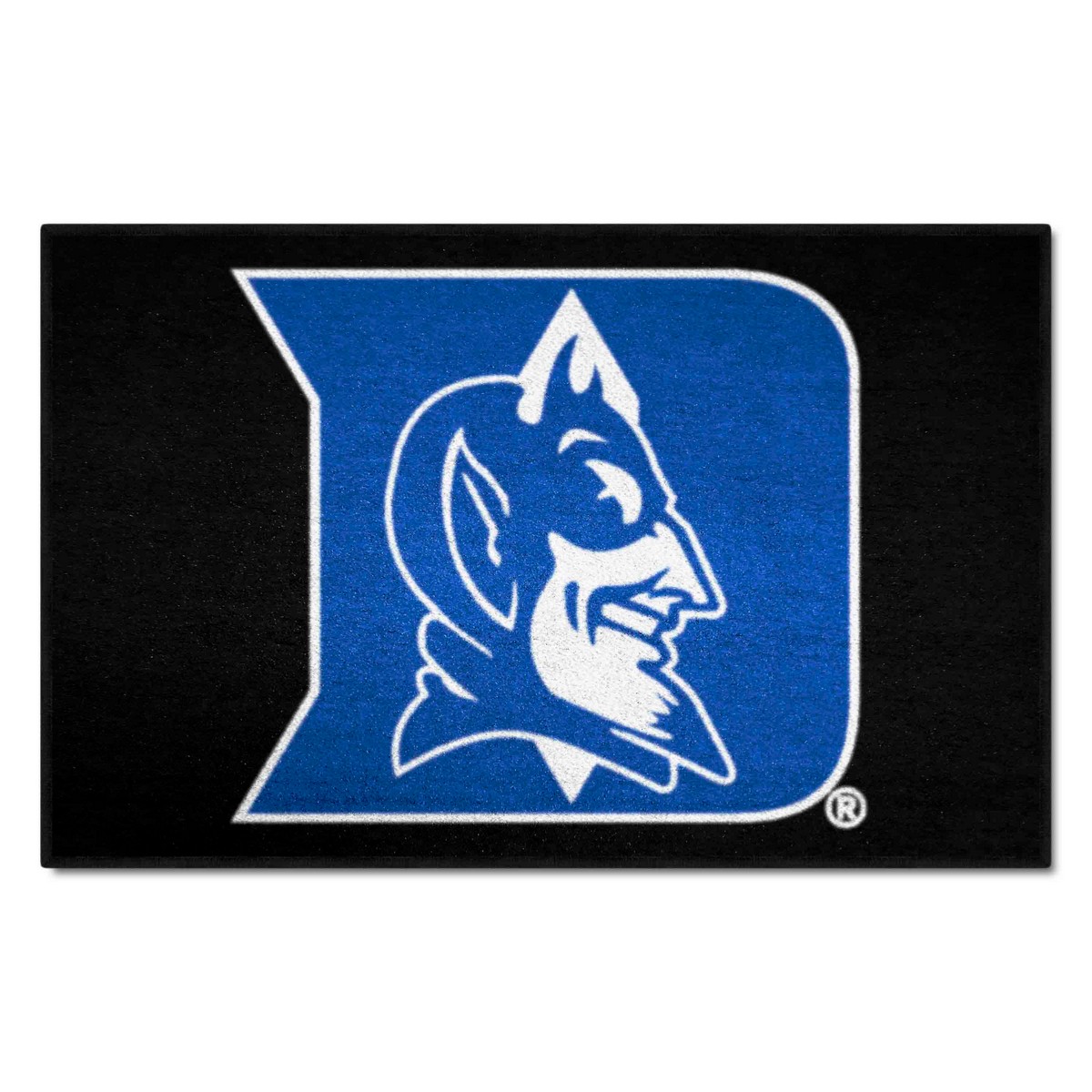 | Duke Blue Devils Starter Mat Accent Rug - 19in. x 30in., Devil Logo 9 Ounce, 100 % Nylon Face Recycled vinyl backing for a durable and longer-lasting product Machine made and tufted in the USA Non-skid backing with serged borders for added durability Machine washable; vacuum regularly and spot clean for any easy and quick clean Officially licensed and chromojet-printed in true team colors for vibrant, lasting color Duke University in North Carolina |
