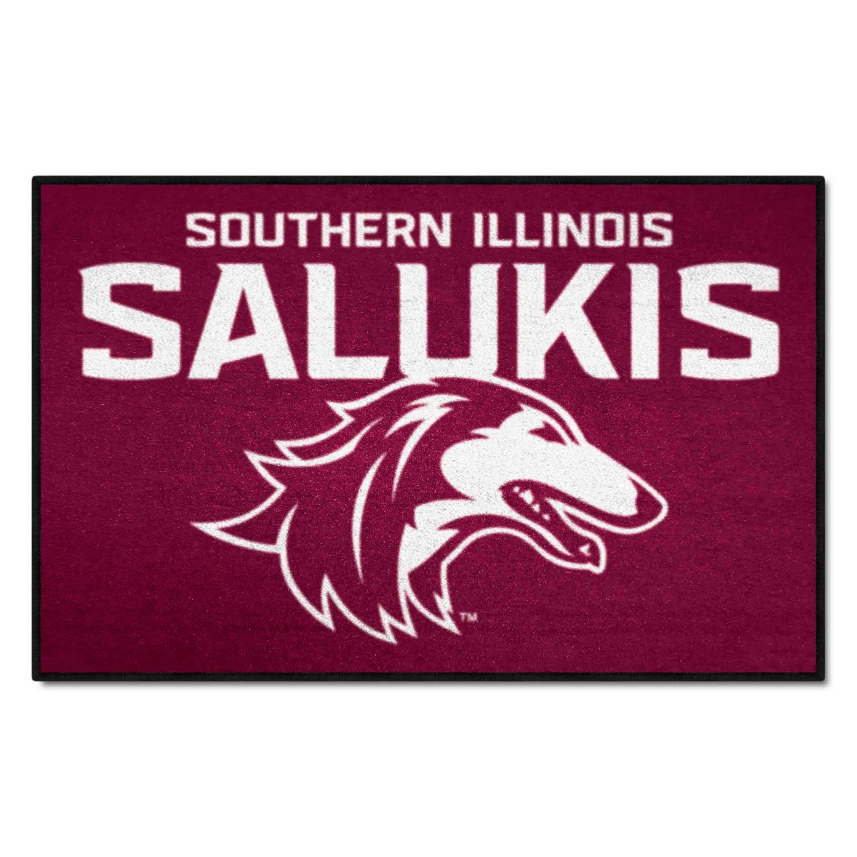 | Southern Illinois Salukis Starter Mat Accent Rug - 19in. x 30in. 9 Ounce, 100 % Nylon Face Recycled vinyl backing for a durable and longer-lasting product Machine made and tufted in the USA Non-skid backing with serged borders for added durability Machine washable; vacuum regularly and spot clean for any easy and quick clean Officially licensed and chromojet-printed in true team colors for vibrant, lasting color Southern Illinois University in Illinois |