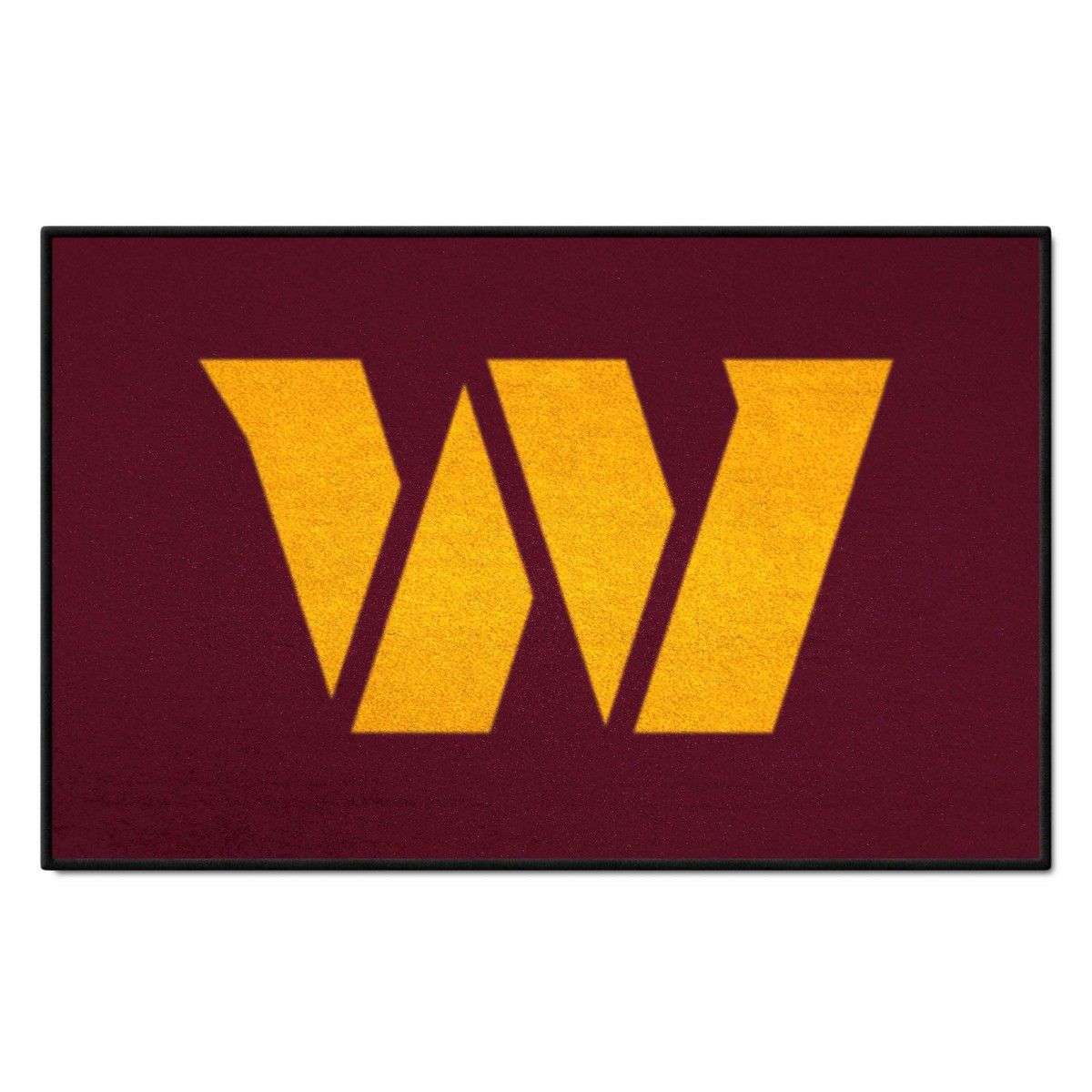 | Washington Commanders Starter Mat Accent Rug - 19in. x 30in. 9 Ounce, 100 % Nylon Face Recycled vinyl backing for a durable and longer-lasting product Machine made and tufted in the USA Non-skid backing with serged borders for added durability Machine washable; vacuum regularly and spot clean for any easy and quick clean Officially licensed and chromojet-printed in true team colors for vibrant, lasting color NFL - Washington Commanders in Maryland NFL National Football League |