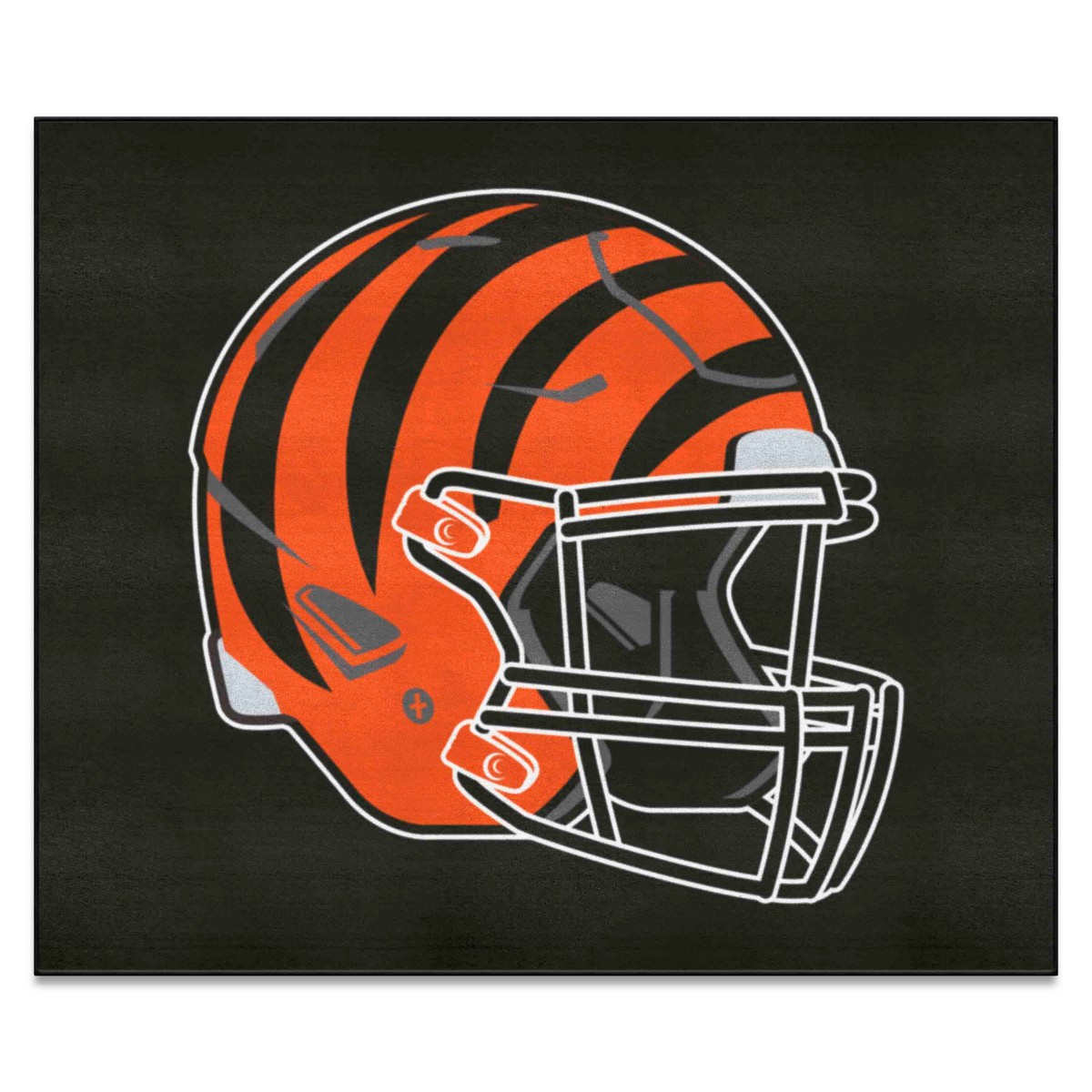 | Cincinnati Bengals Tailgater Rug - 5ft. x 6ft., Helmet Logo 9 Ounce, 100 % Nylon Face Recycled vinyl backing for a durable and longer-lasting product Machine made and tufted in the USA Non-skid backing with serged borders for added durability Machine washable; vacuum regularly and spot clean for any easy and quick clean Officially licensed and chromojet-printed in true team colors for vibrant, lasting color NFL - Cincinnati Bengals in Ohio NFL National Football League |