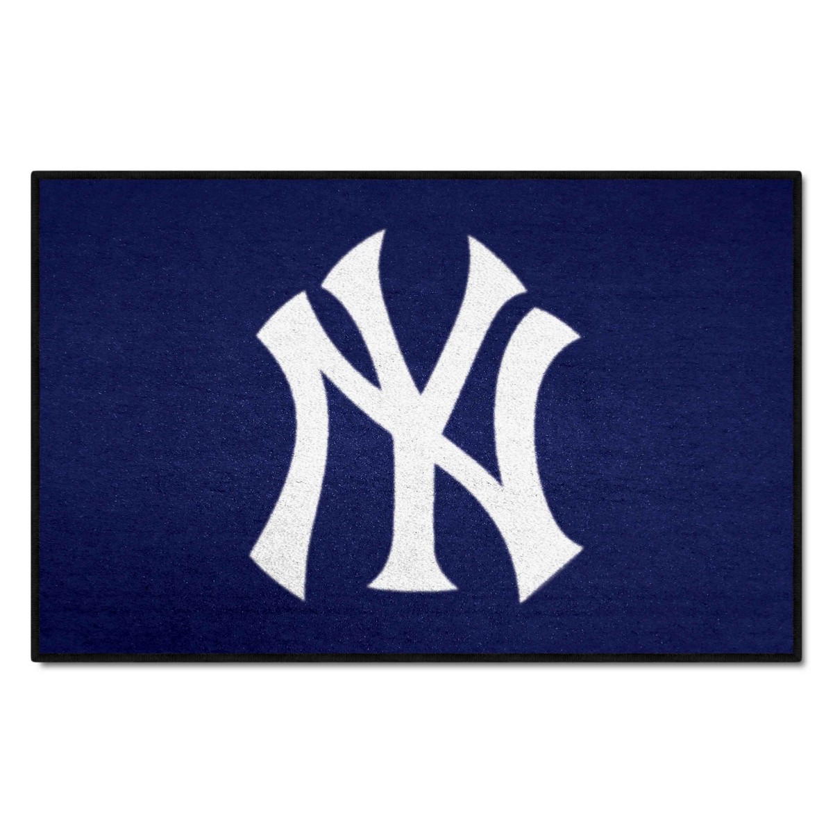 | New York Yankees Starter Mat Accent Rug - 19in. x 30in. 9 Ounce, 100 % Nylon Face Recycled vinyl backing for a durable and longer-lasting product Machine made and tufted in the USA Non-skid backing with serged borders for added durability Machine washable; vacuum regularly and spot clean for any easy and quick clean Officially licensed and chromojet-printed in true team colors for vibrant, lasting color MLB - New York Yankees in New York MLB Major League Baseball |