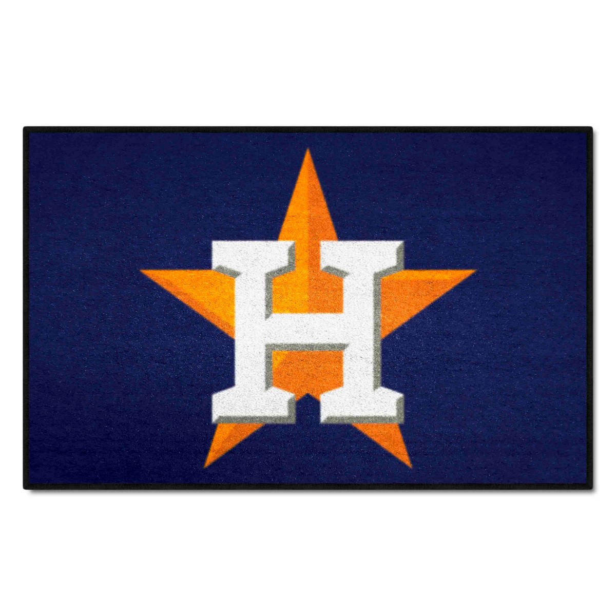 | Houston Astros Starter Mat Accent Rug - 19in. x 30in. 9 Ounce, 100 % Nylon Face Recycled vinyl backing for a durable and longer-lasting product Machine made and tufted in the USA Non-skid backing with serged borders for added durability Machine washable; vacuum regularly and spot clean for any easy and quick clean Officially licensed and chromojet-printed in true team colors for vibrant, lasting color MLB - Houston Astros in Texas MLB Major League Baseball |