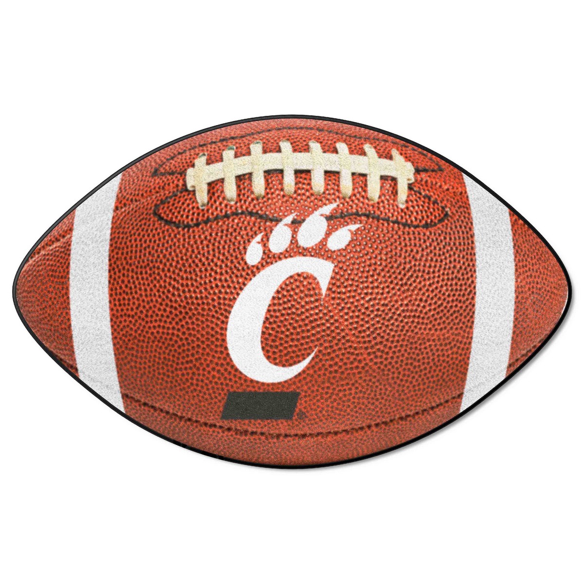 | Cincinnati Bearcats Football Rug - 20.5in. x 32.5in. 9 Ounce, 100 % Nylon Face Recycled vinyl backing for a durable and longer-lasting product Machine made and tufted in the USA Non-skid backing with taped borders for added durability Machine washable; vacuum regularly and spot clean for any easy and quick clean Officially licensed and chromojet-printed in true team colors for vibrant, lasting color University of Cincinnati in Ohio |