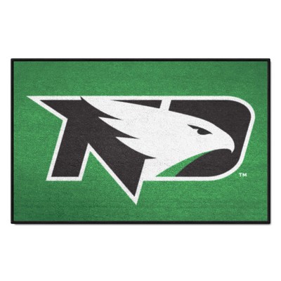 | North Dakota Fighting Hawks Starter Mat Accent Rug - 19in. x 30in. 9 Ounce, 100 % Nylon Face Recycled vinyl backing for a durable and longer-lasting product Machine made and tufted in the USA Non-skid backing with serged borders for added durability Machine washable; vacuum regularly and spot clean for any easy and quick clean Officially licensed and chromojet-printed in true team colors for vibrant, lasting color University of North Dakota in North Dakota |